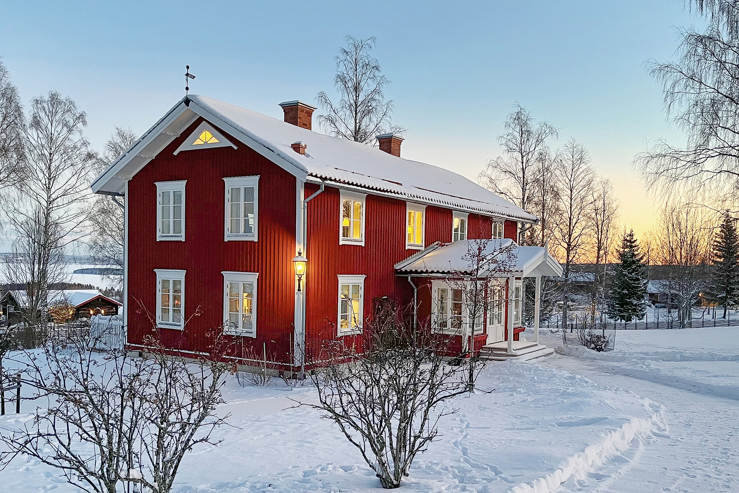 Huset har många omsorgsfullt designade detaljer såväl in- som utvändigt vilket ger en fin estetik och en känsla av gårdsromantik, trots att huset är modernt. Till känslan av ”Dalagård” bidrar gärdesgården runt hela tomten, det stora timrade dubbelgaraget med förråd och en timrad vedbod, båda med fina blyinfattade fönster. Huset är i mycket gott skick efter många förbättringar och renoveringar de senaste åren. Den öppna och generösa bostadsarean erbjuder en såväl elegant som trivsam boendemiljö och en funktionell planlösning. Huset har tre murade eldstäder, inklusive en vedspis i köket som ger mysig atmosfär. Det stora lantköket och spatiösa rum för umgänge kombineras med bra förvaringsutrymmen och rymlig tvättstuga.