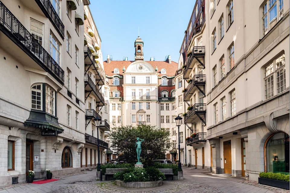 Klassisk och representativ sekelskiftesvåning på Strandvägen. Hiss direkt in i våningen